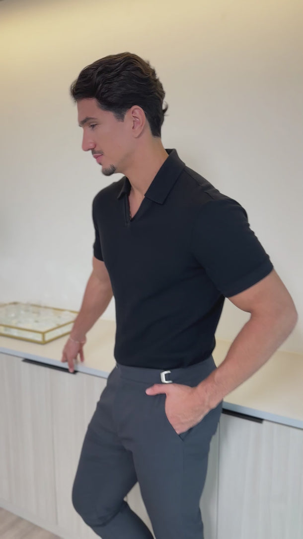 Camisa Polo Rich Tricô Texturizada Sem Botão - Linha Rich - Preto
