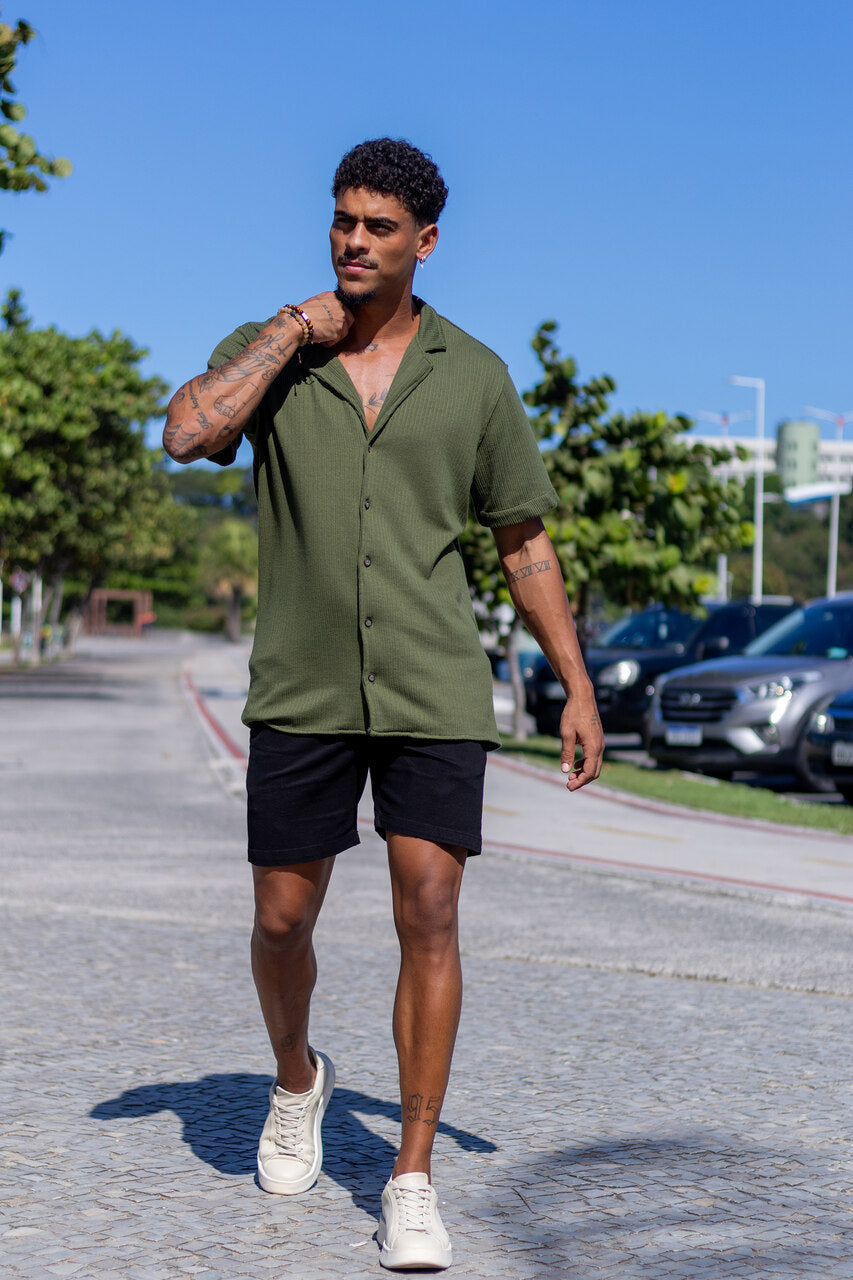 Camisa Paradizo Tricô Texturizada Gola Cubana Verde Militar - Linha Urban