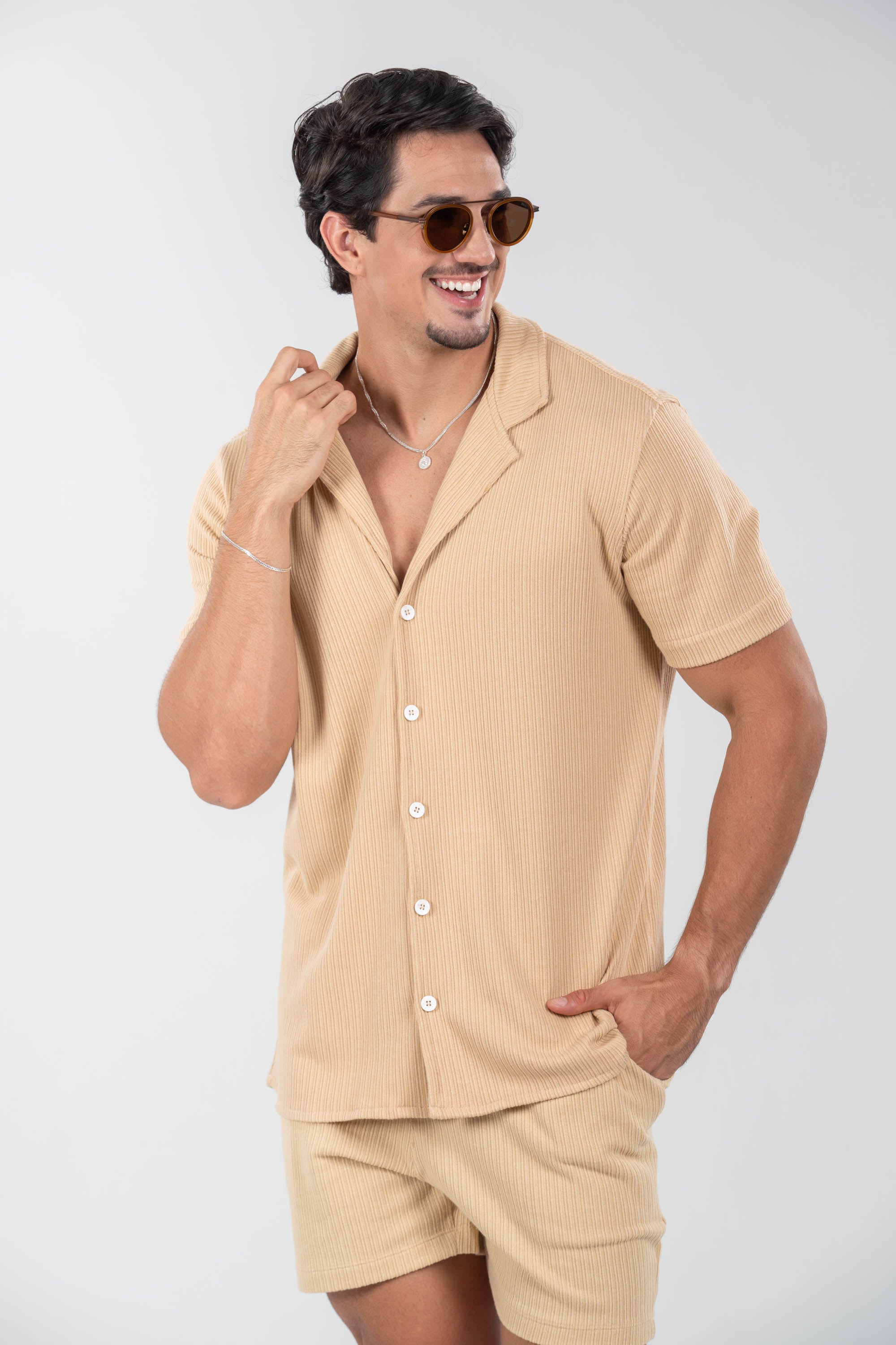 Camisa Paradizo Tricô Texturizada Gola Cubana - Linha Urban - Desert