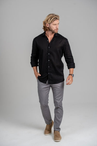 Inspiração Camisa Positano Preta + Calça Vance Chumbo + Loafer Summer Wester