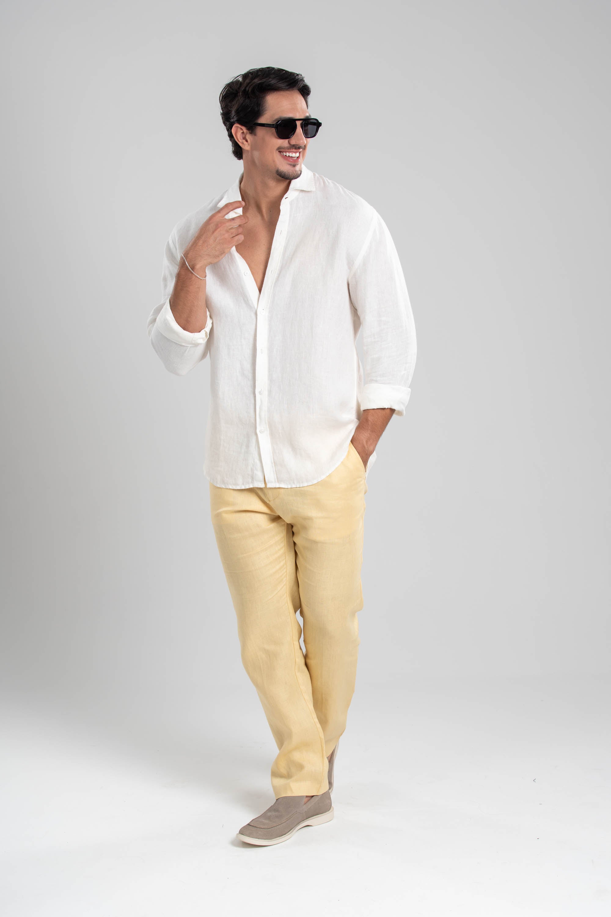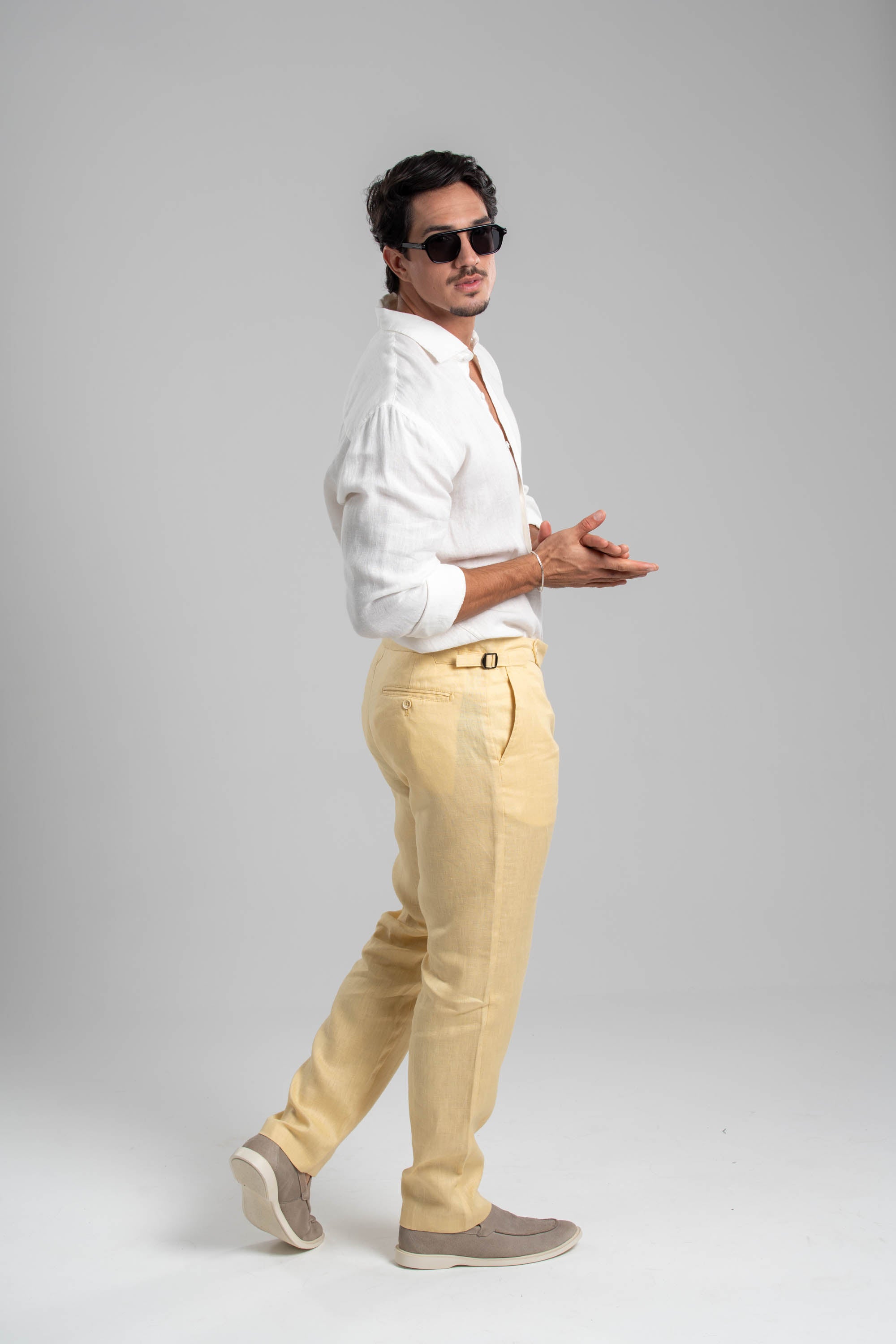 Calça Amalfi Alfaitaria Linho Amarelo - Linha Resort