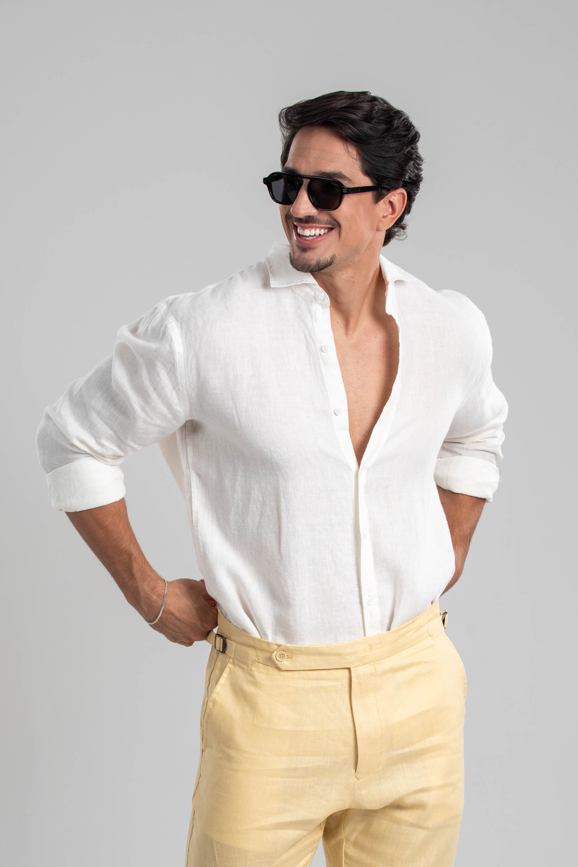 Elegância Relaxada. Alfaiataria 100% Linho. Estética de Bom Gosto e Sucesso.