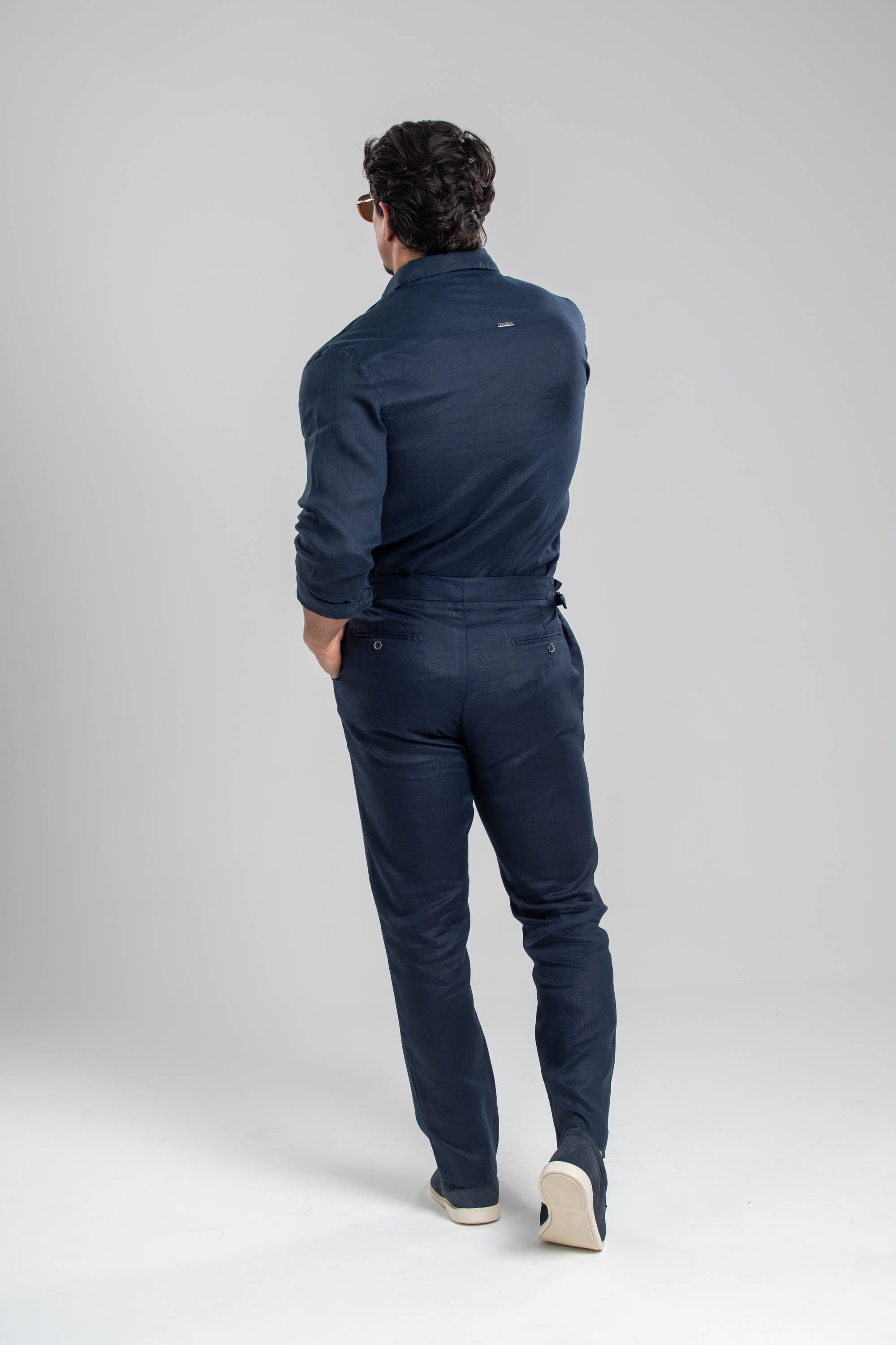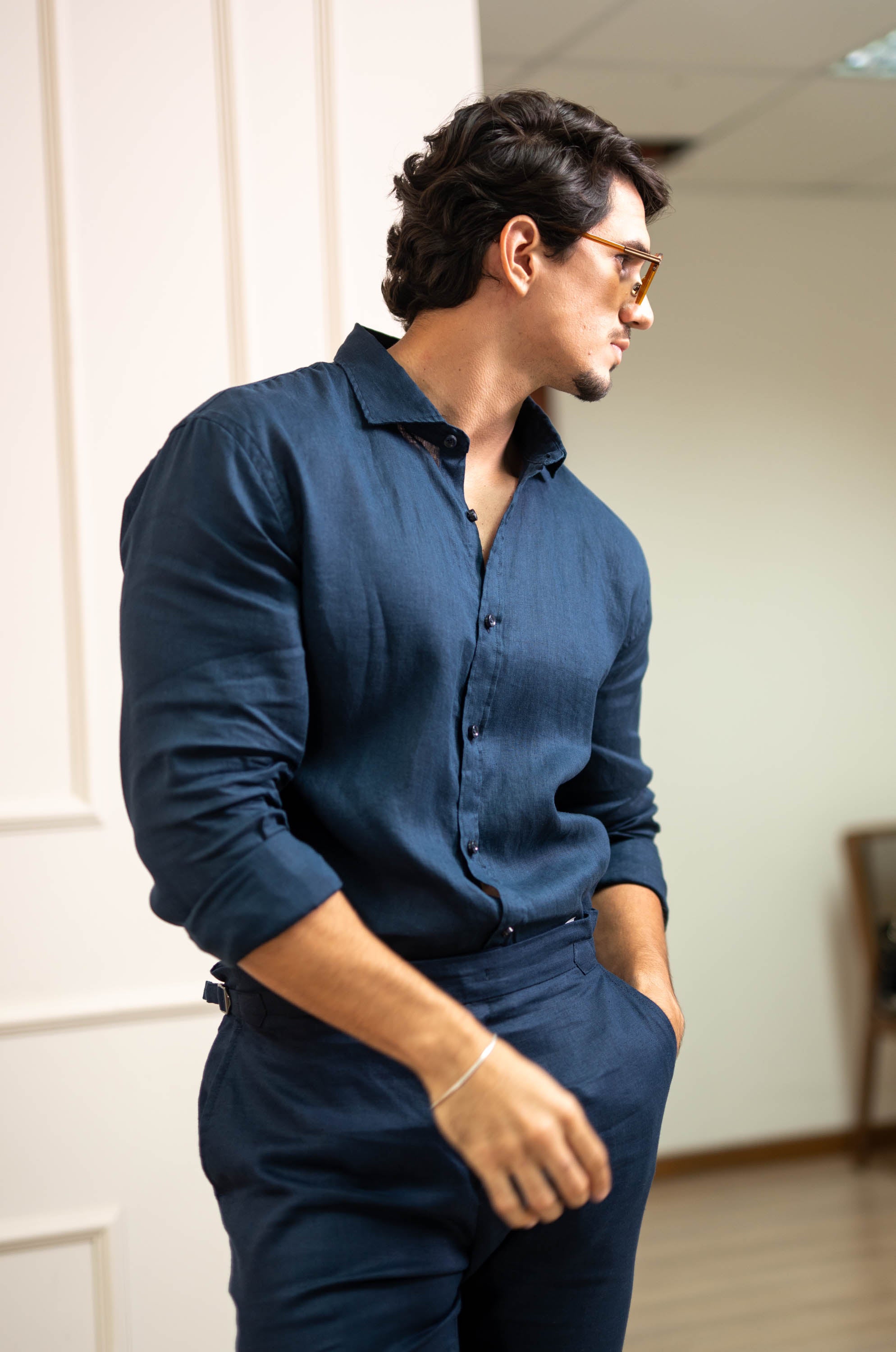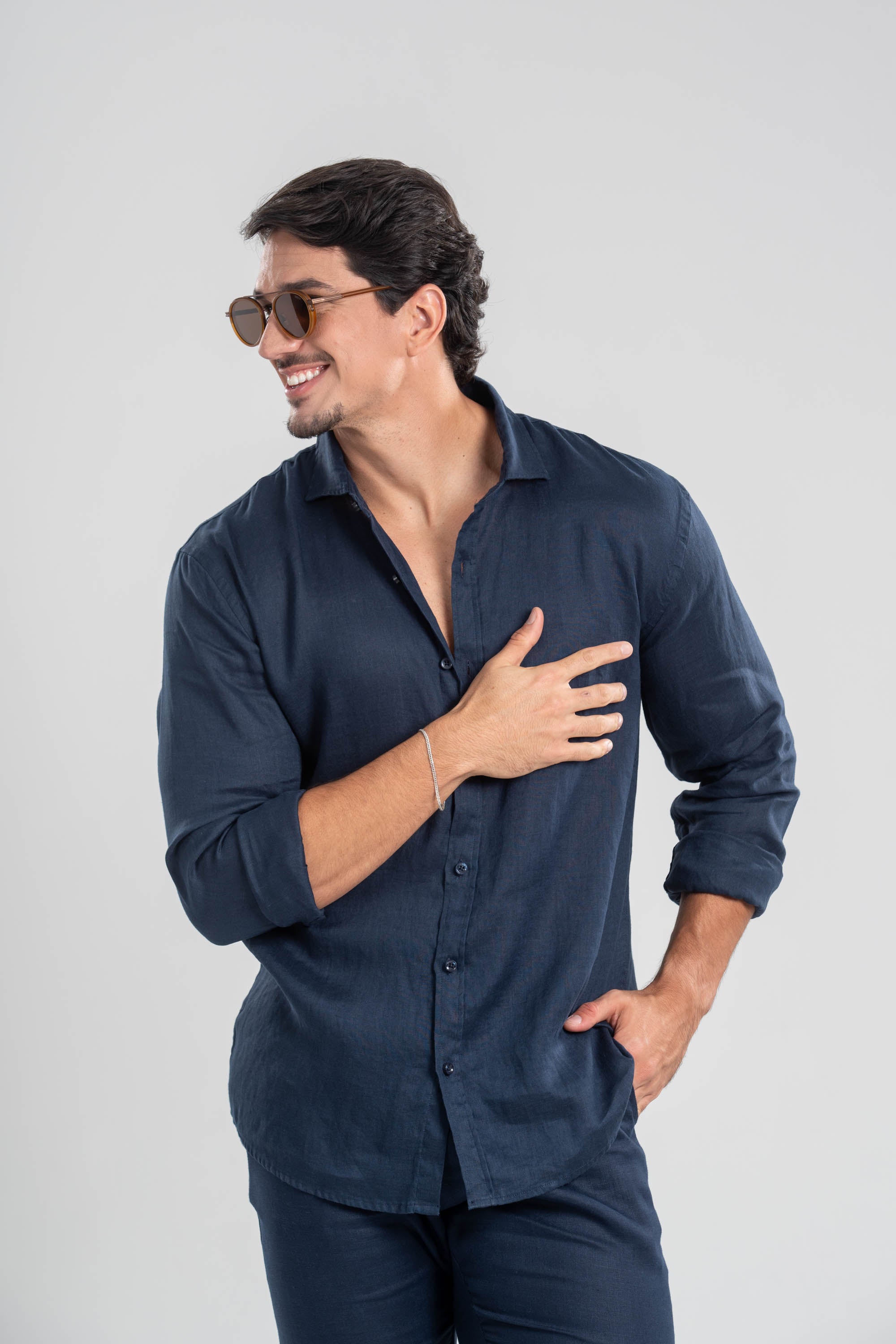 Camisa Amalfi 100% linho Azul Escuro - Linha Resort