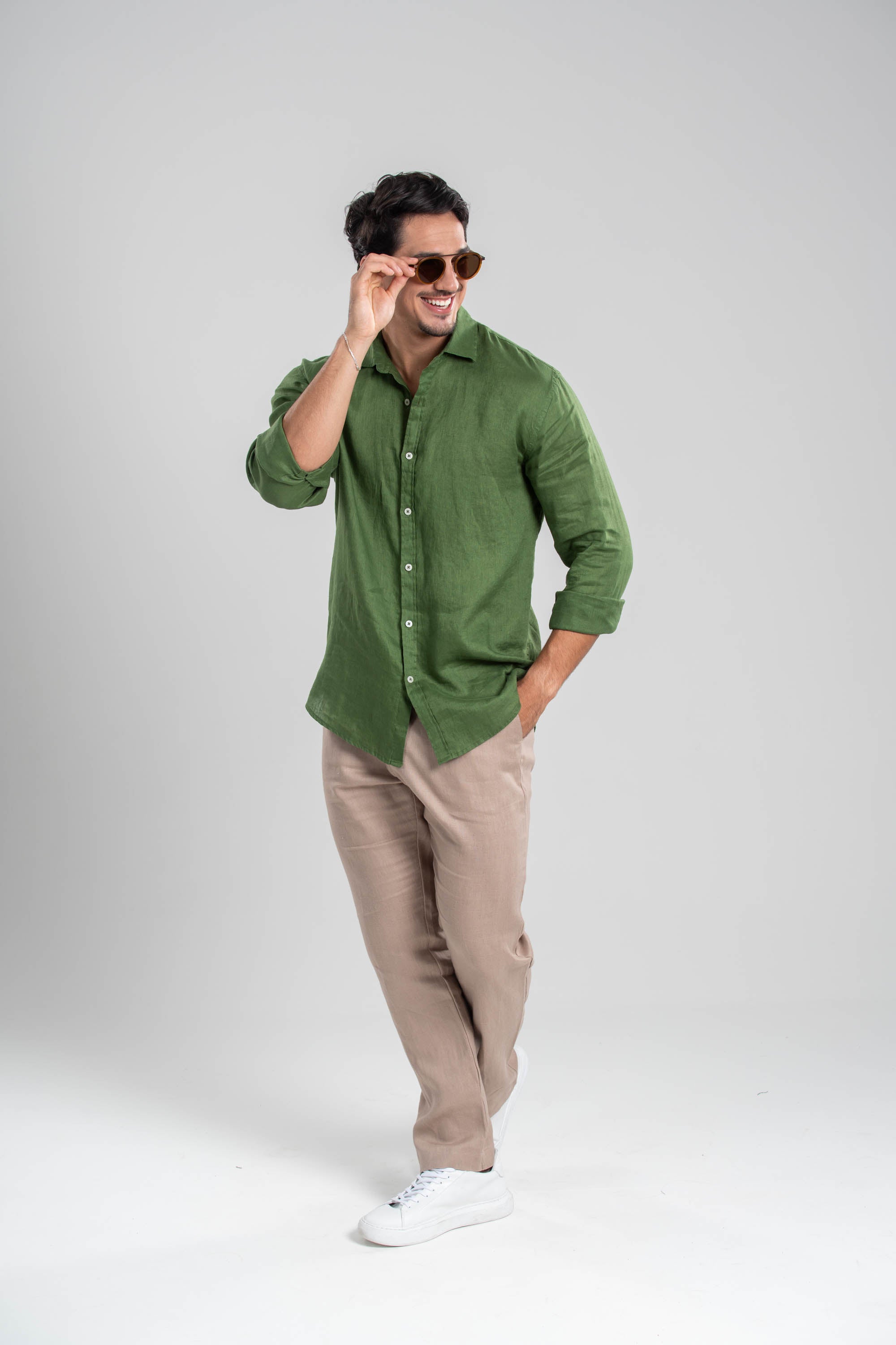 Camisa Amalfi 100% linho Verde - Linha Resort