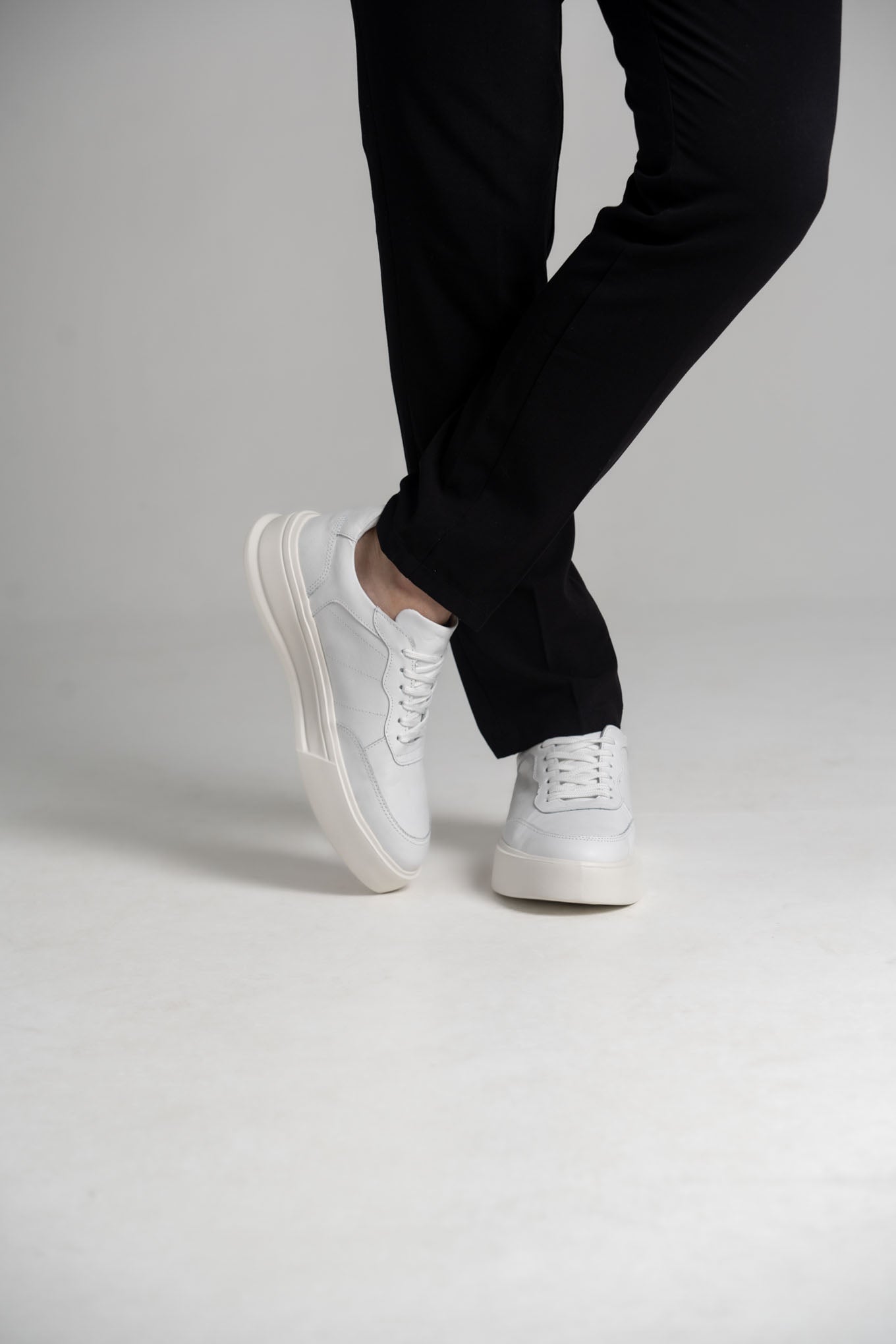 Feito em couro liso de alta qualidade, ele possui recortes estratégicos que reforçam sua identidade única, ao mesmo tempo discreta e marcante. O solado mais alto oferece alguns centímetros a mais de altura com conforto absoluto, valorizando a silhueta sem comprometer o bem-estar ao longo do dia.