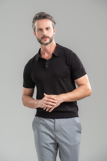 Polo Classic Tricô Manga Curta Preta - Linha Essential