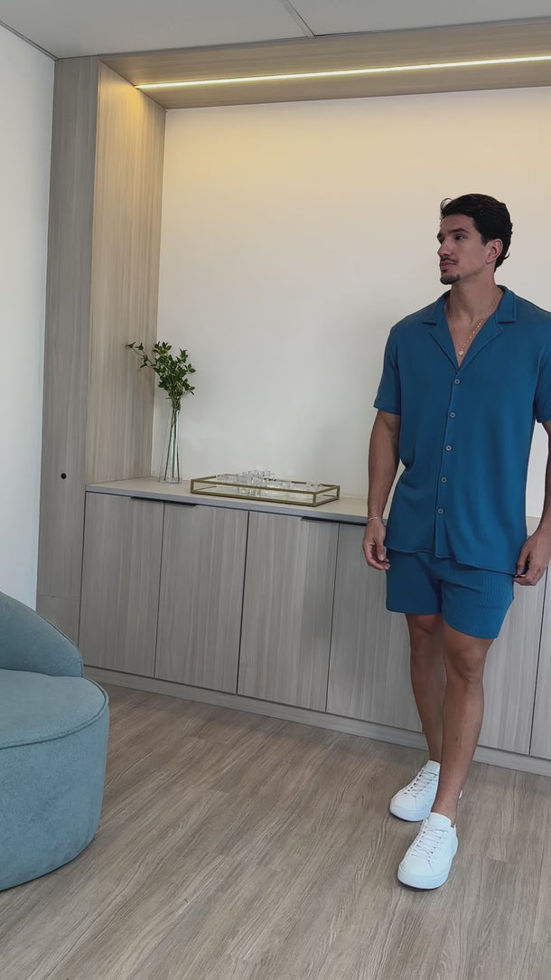 Camisa Paradizo Tricô Gola Cubana Azul Petróleo - Linha Urban
