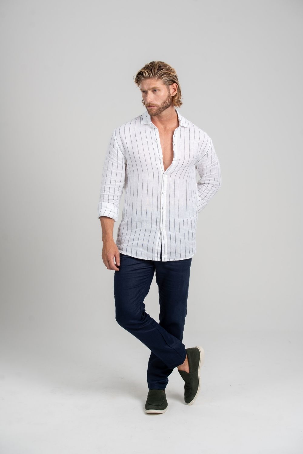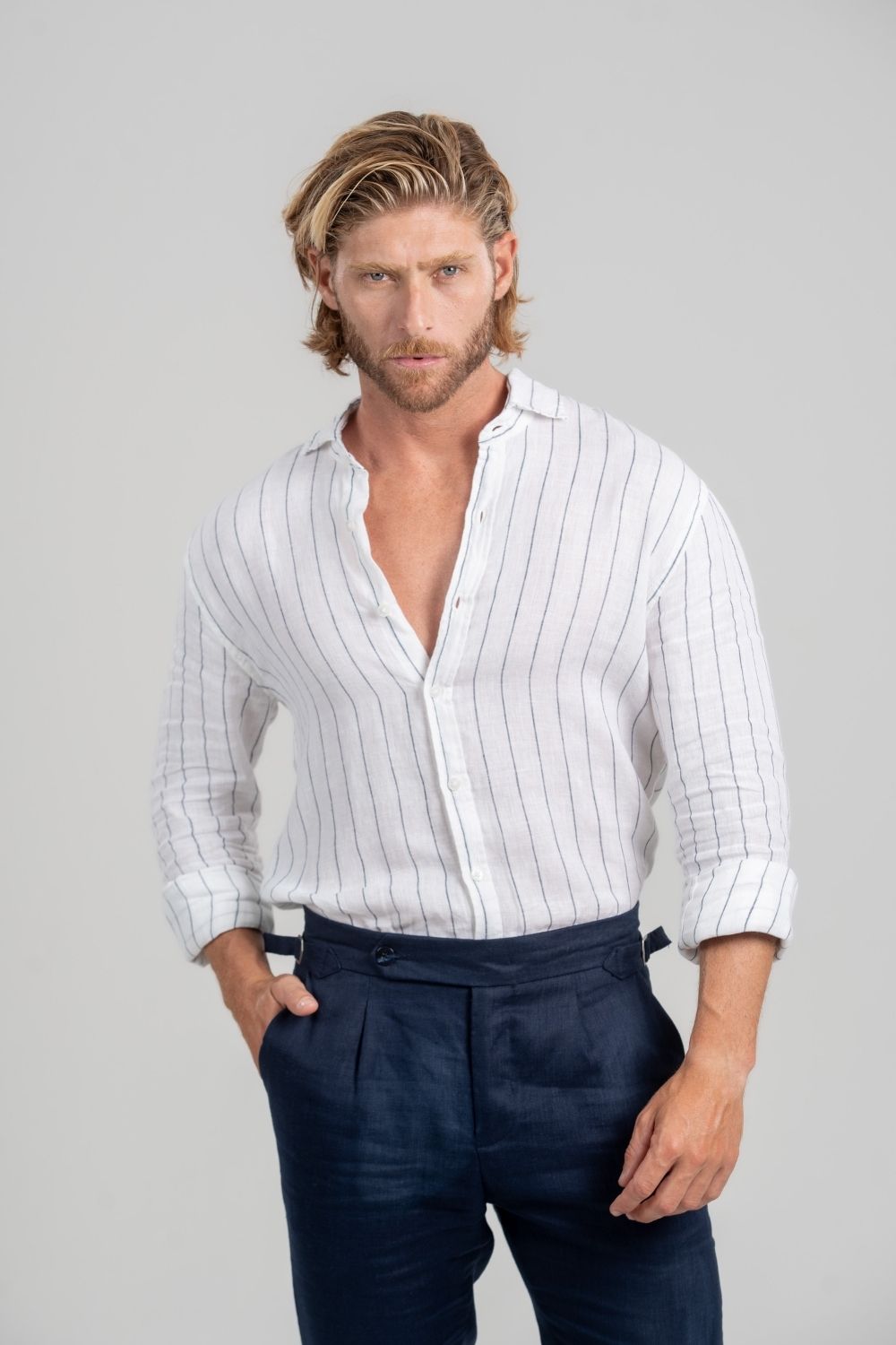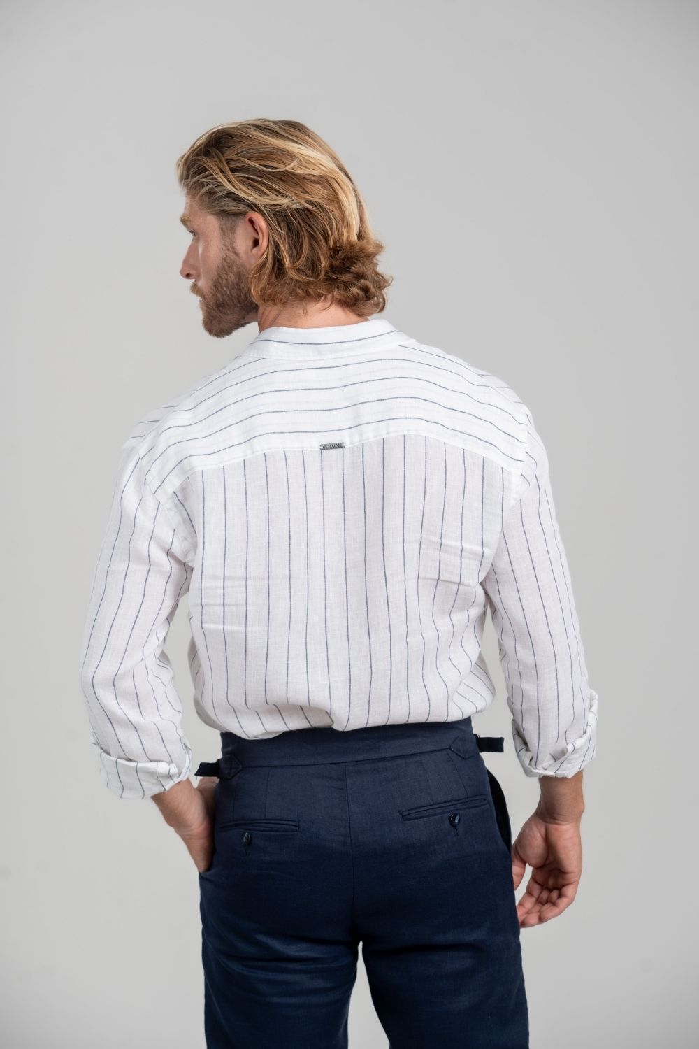 Camisa Amalfi 100% linho Listrada Azul - Linha Resort