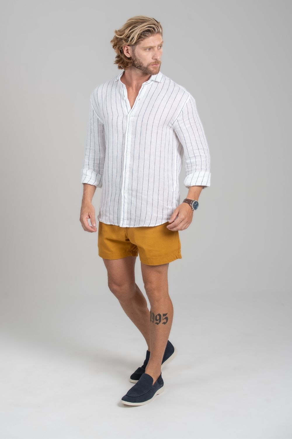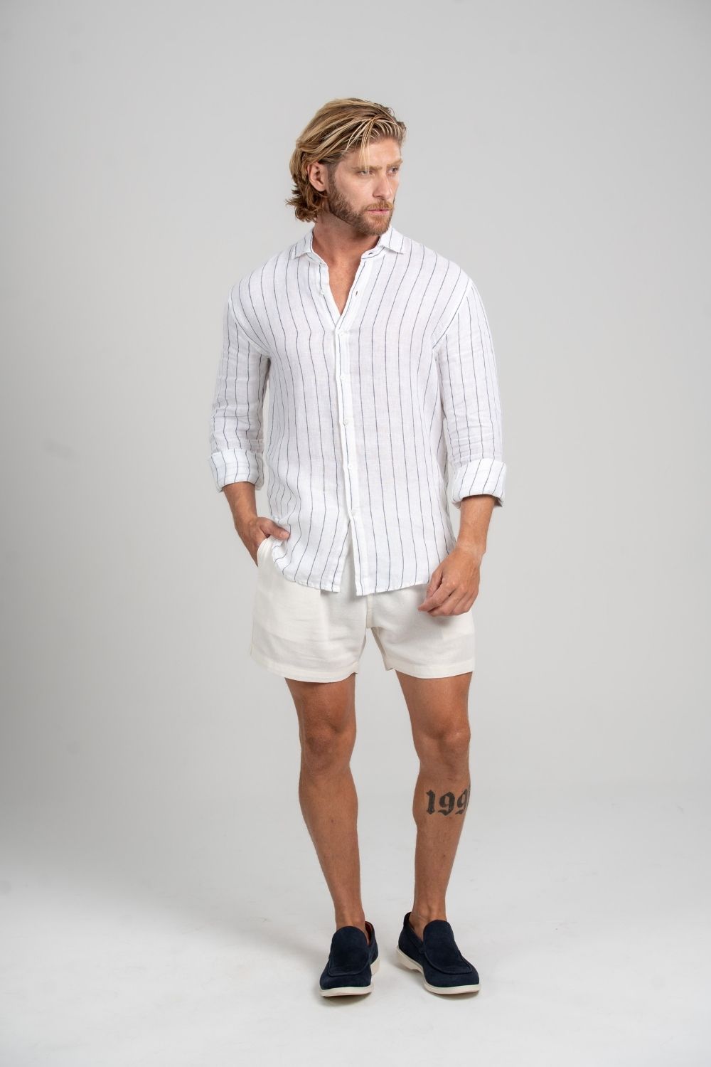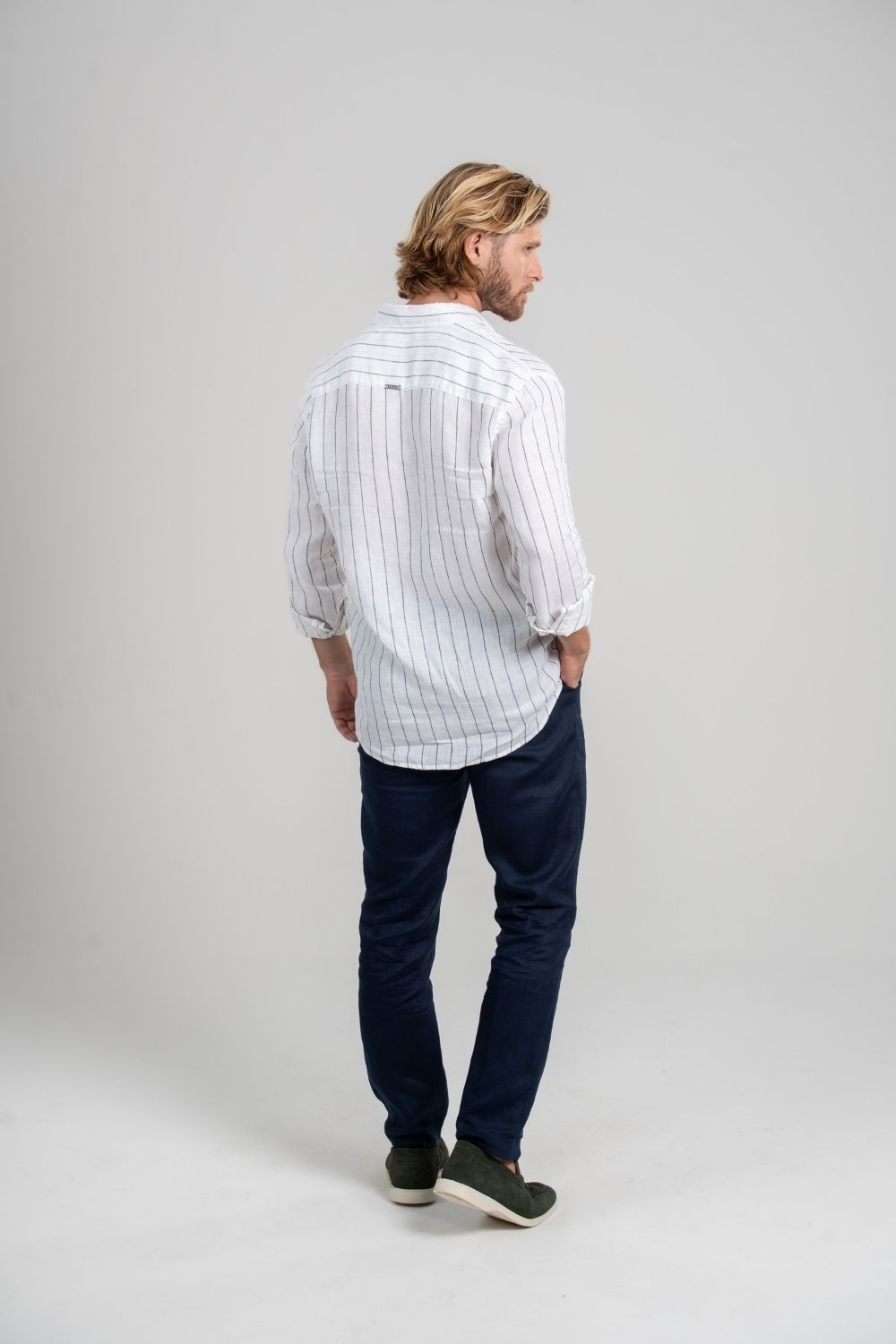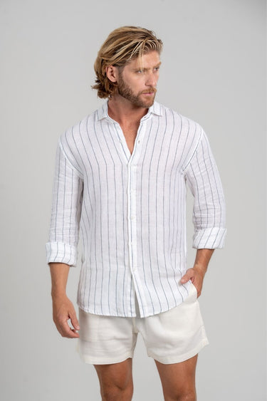 Camisa Amalfi 100% linho Listrada Azul - Linha Resort