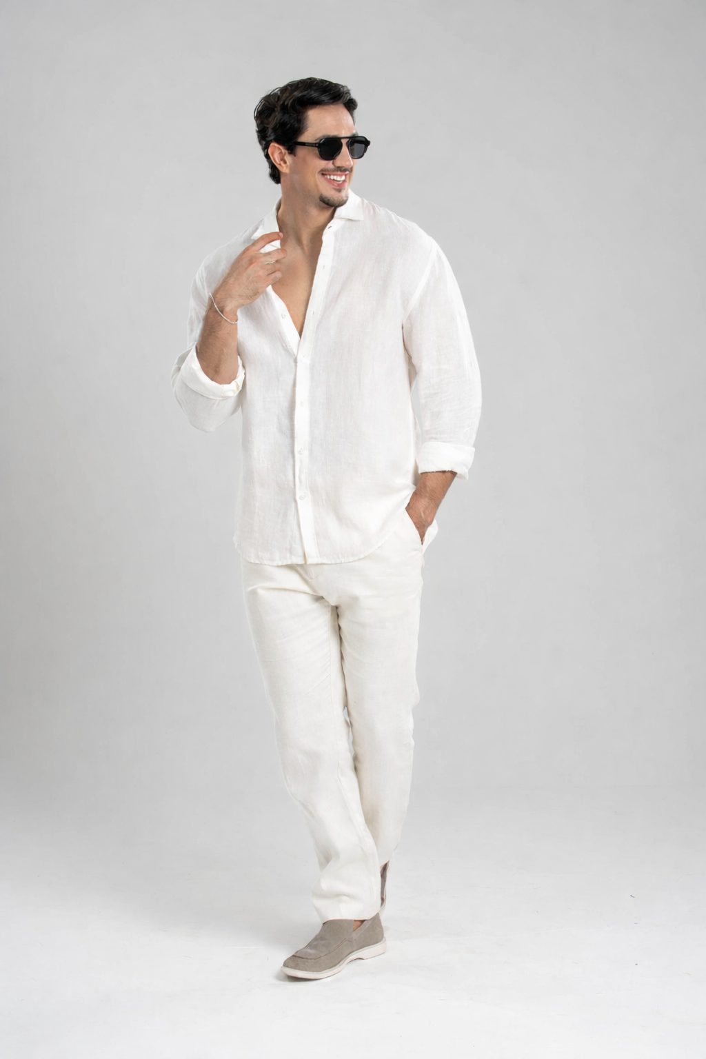 Conjunto Puro Linho Amalfi Calça e Camisa - Off White