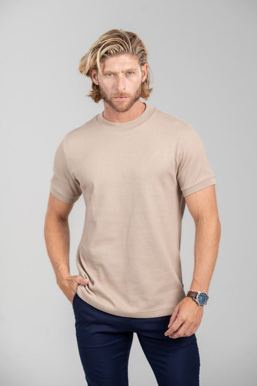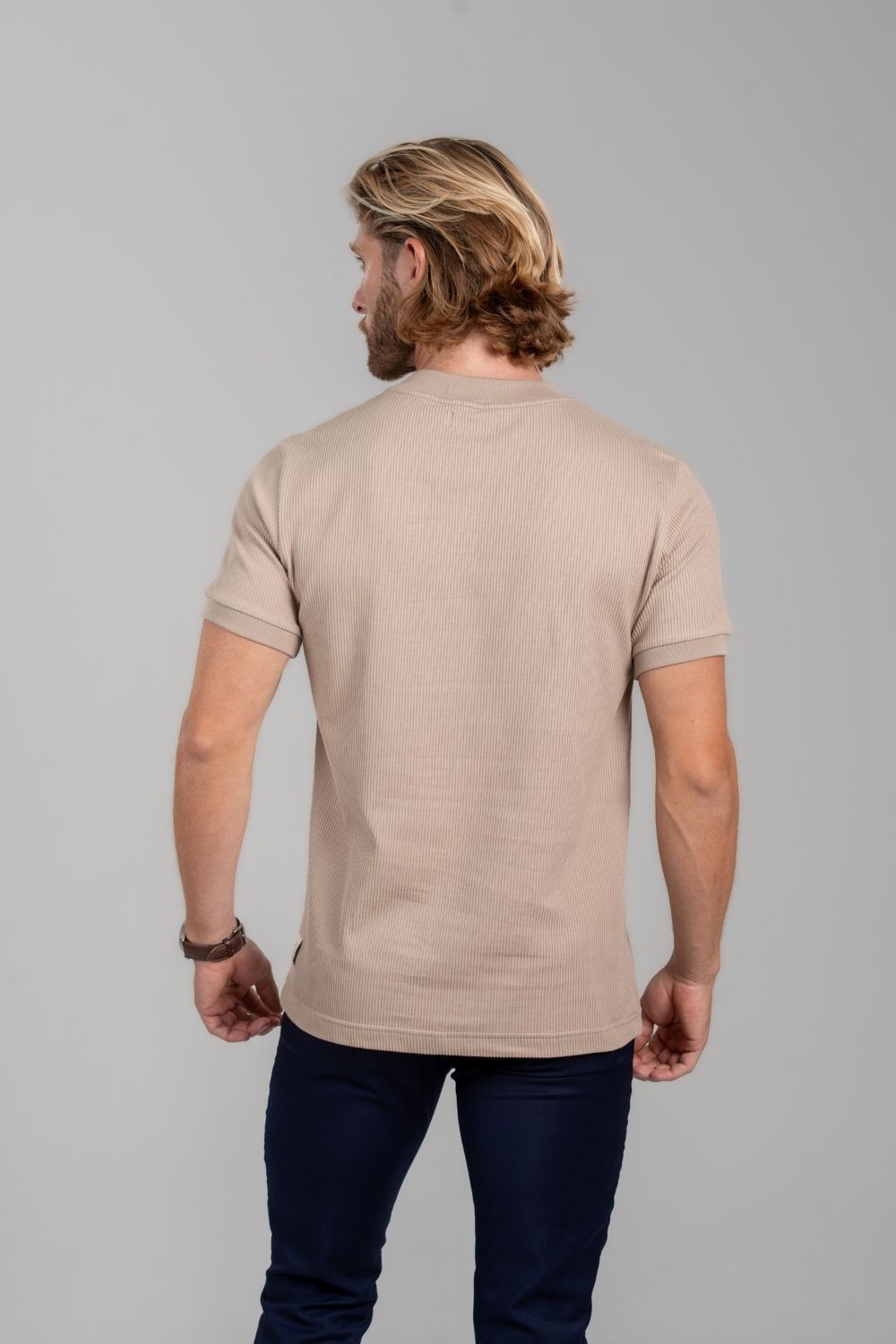 Camiseta Rich Textura Gola Média Marrom Claro - Linha Rich
