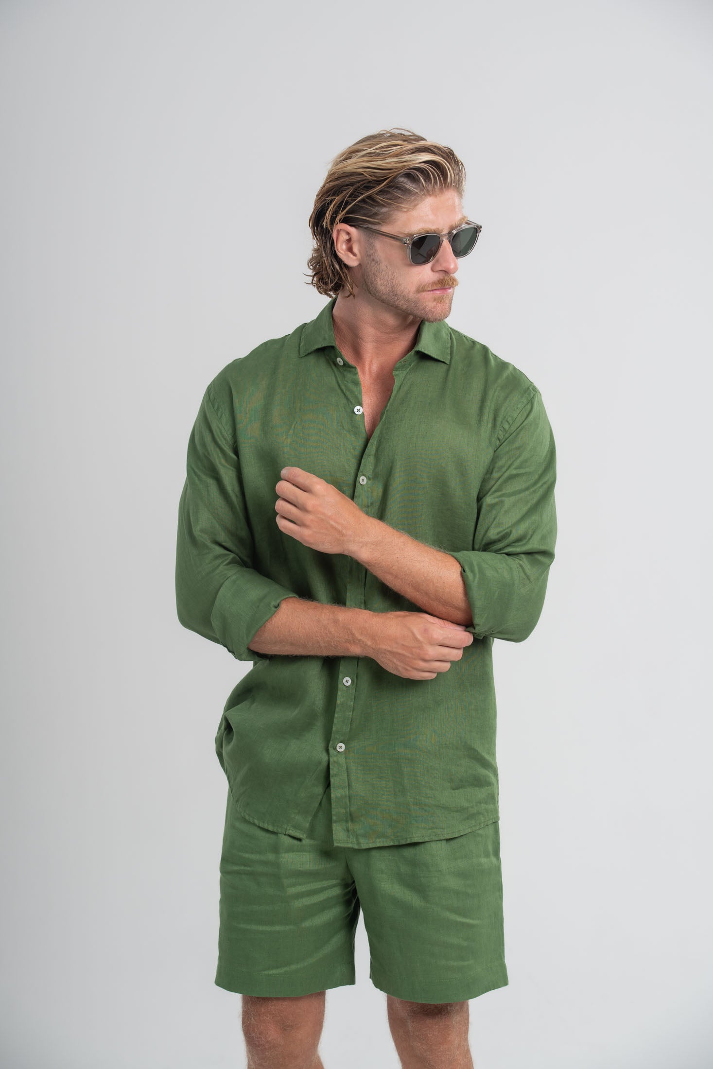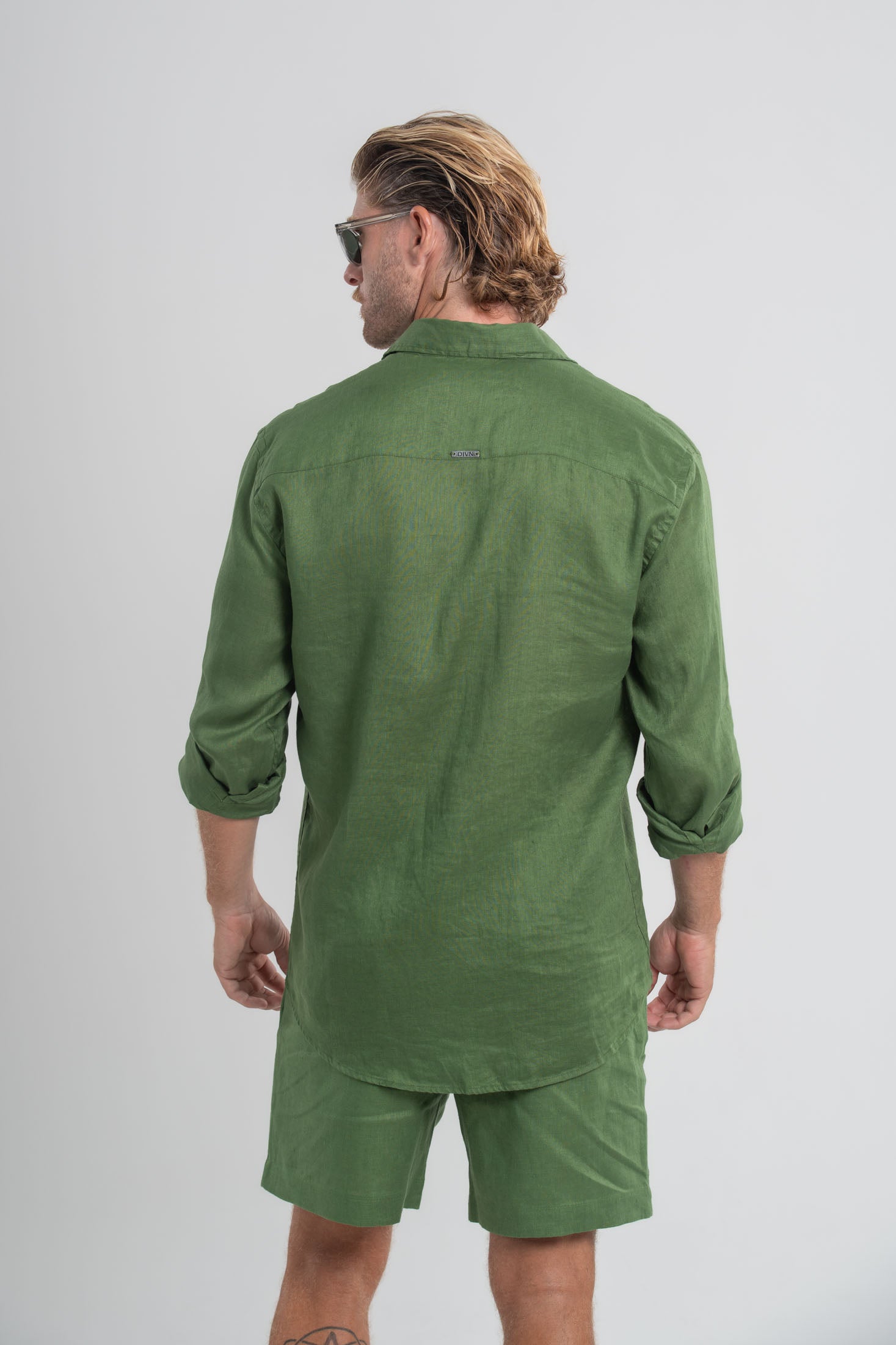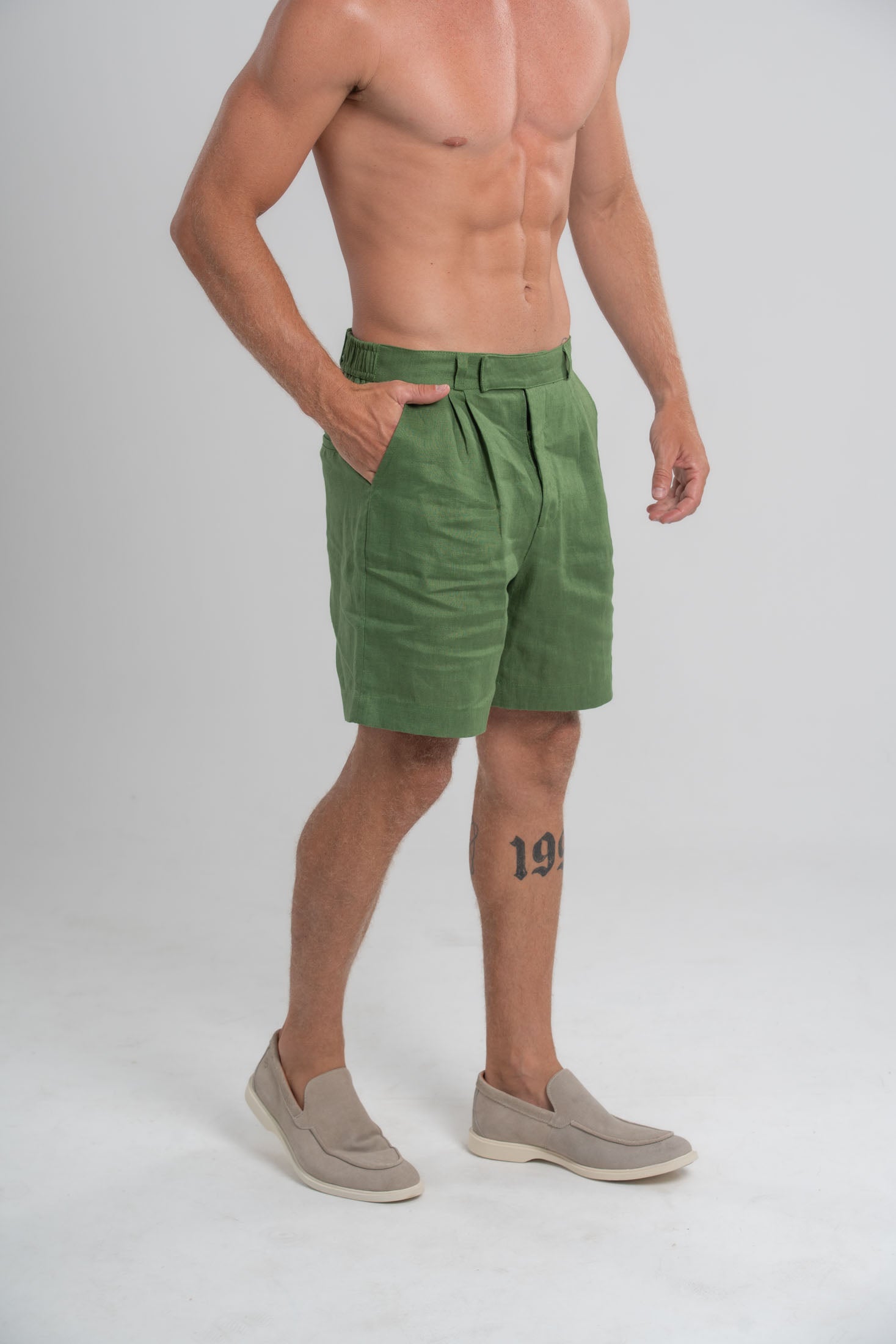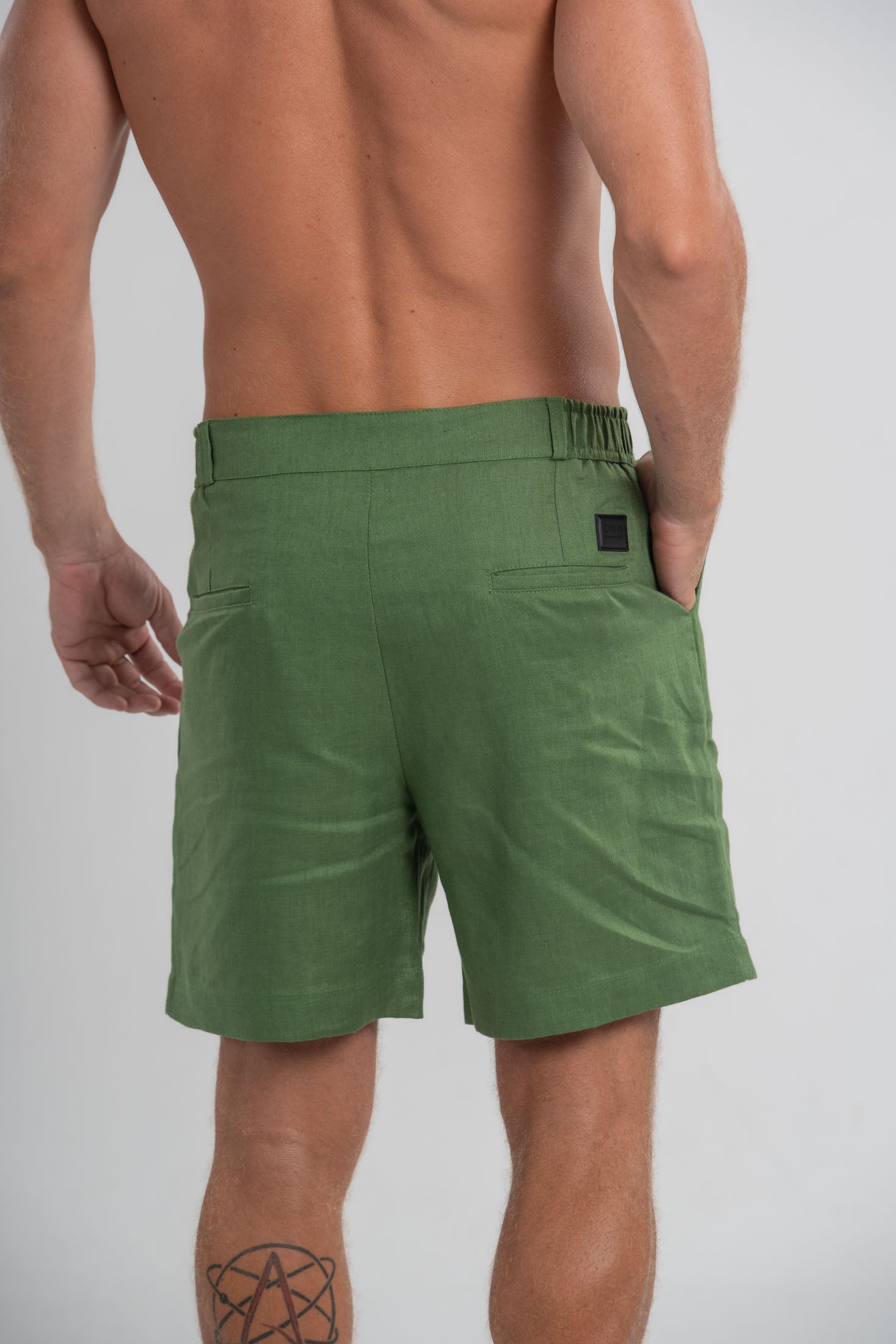 Bermuda Amalfi Puro Linho Verde Palmeira - Linha Resort