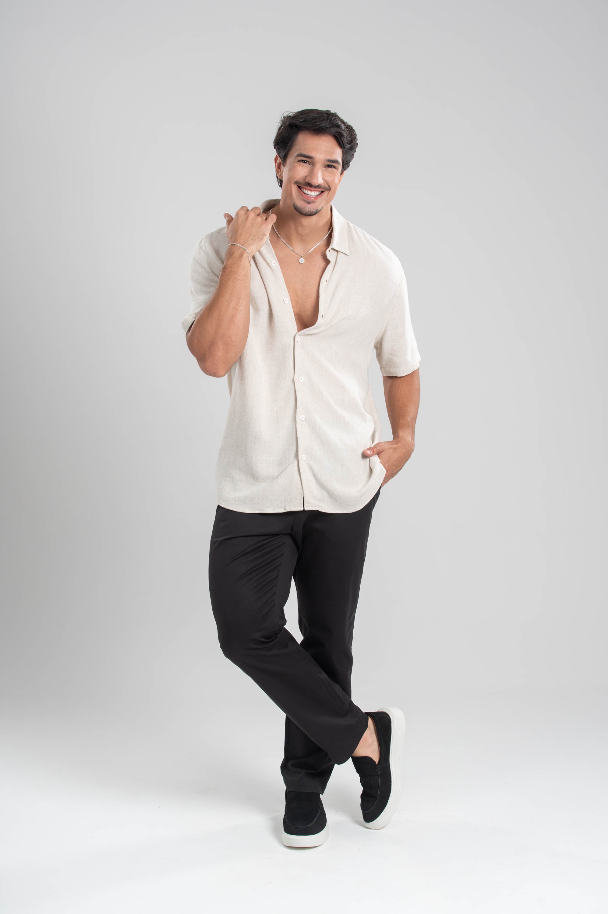 - Material: Blend exclusivo de linho e viscose tipo 01 com fluidez e leveza.