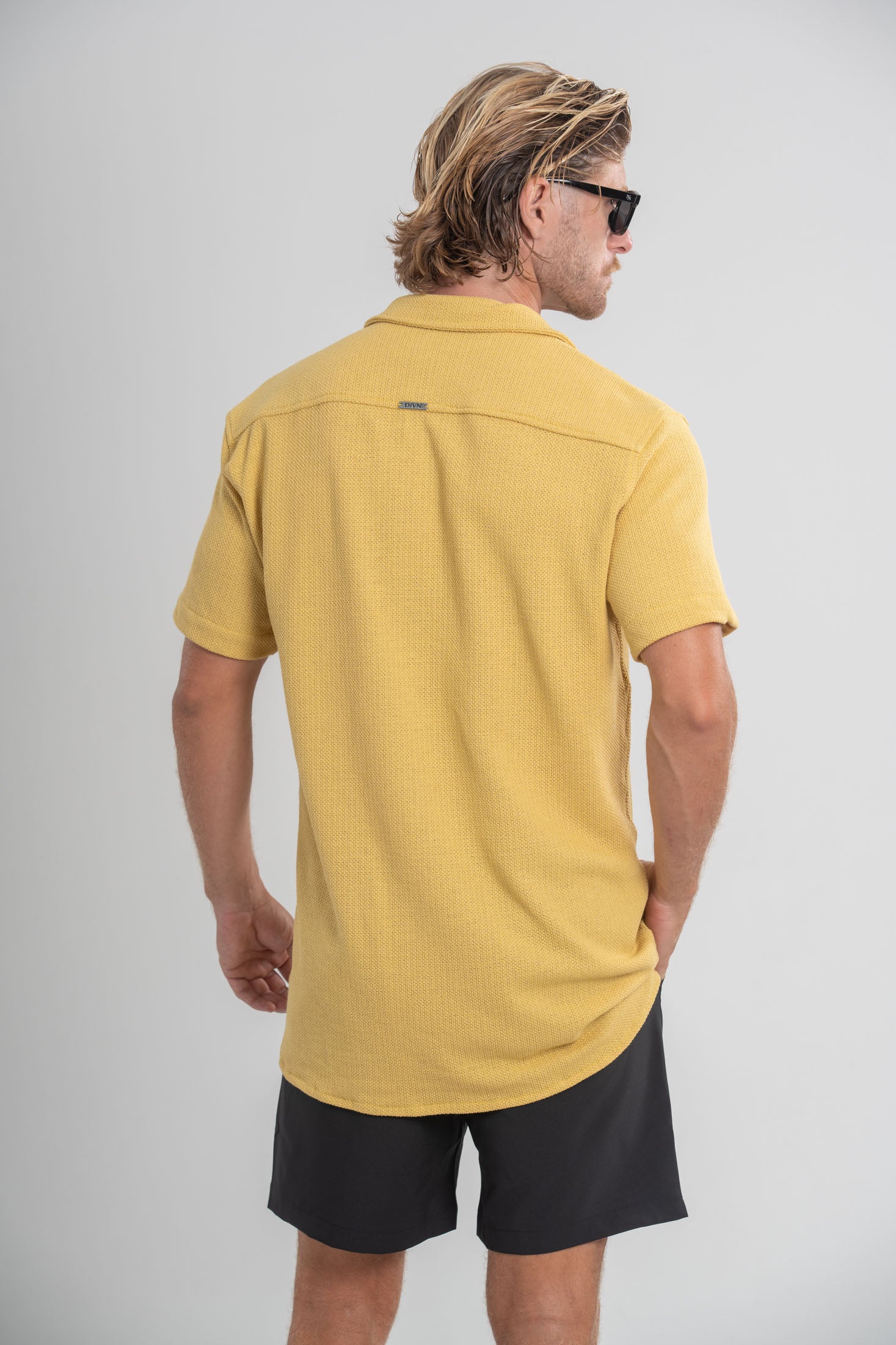 Modelagem exclusiva Divn, projetada para oferecer caimento fluido, toque agradável e visual equilibrado entre o casual e o sofisticado. Para um visual mais ajustado, opte por um tamanho menor.