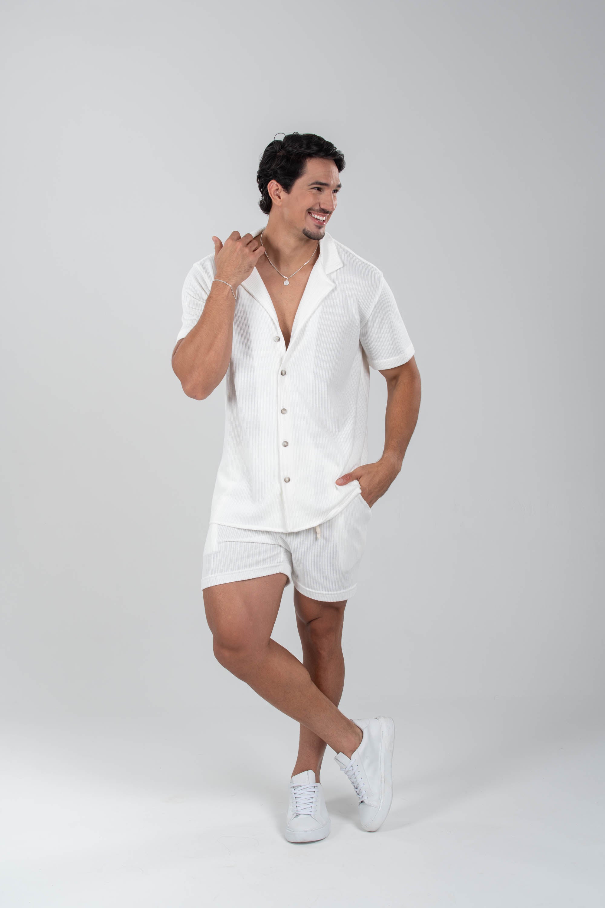 Camisa Paradizo Tricô Texturizada Gola Cubana - Linha Urban - Off White