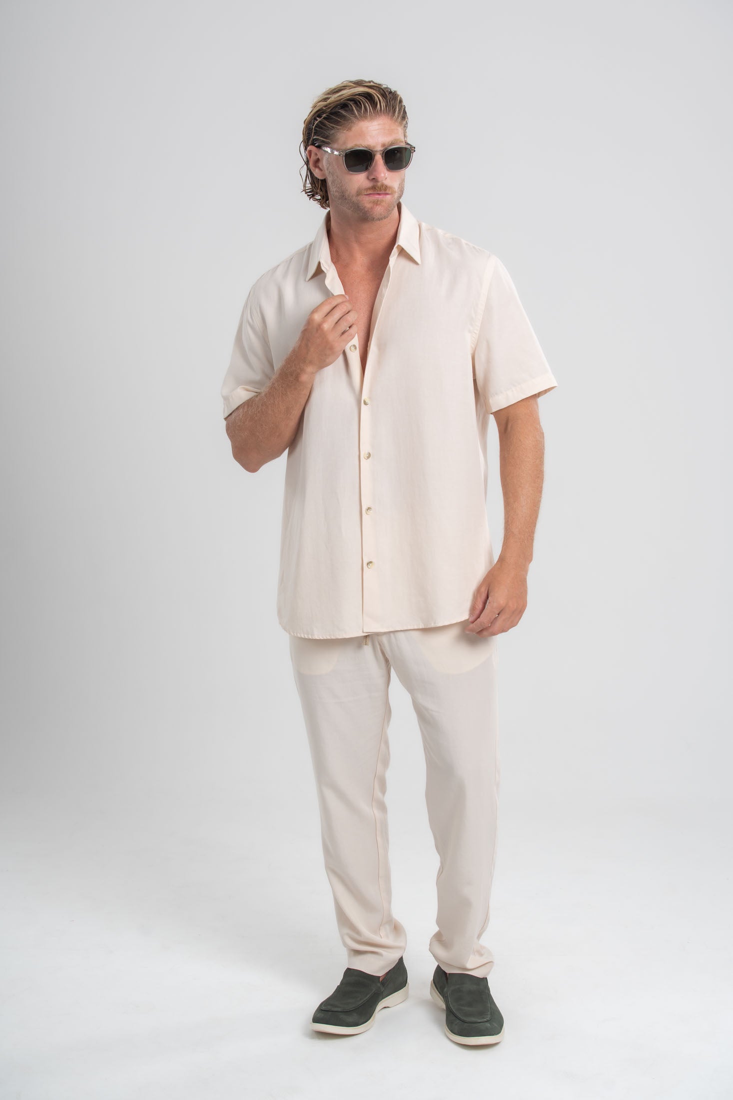 Leve, fresco e marcante. O Conjunto Vegas Liocel traduz o visual urbano de verão com sofisticação descontraída. Confeccionado em 100% Liocel premium, entrega toque gelado imediato, caimento fluido e brilho discreto, criando uma silhueta moderna e elegante sem esforço.