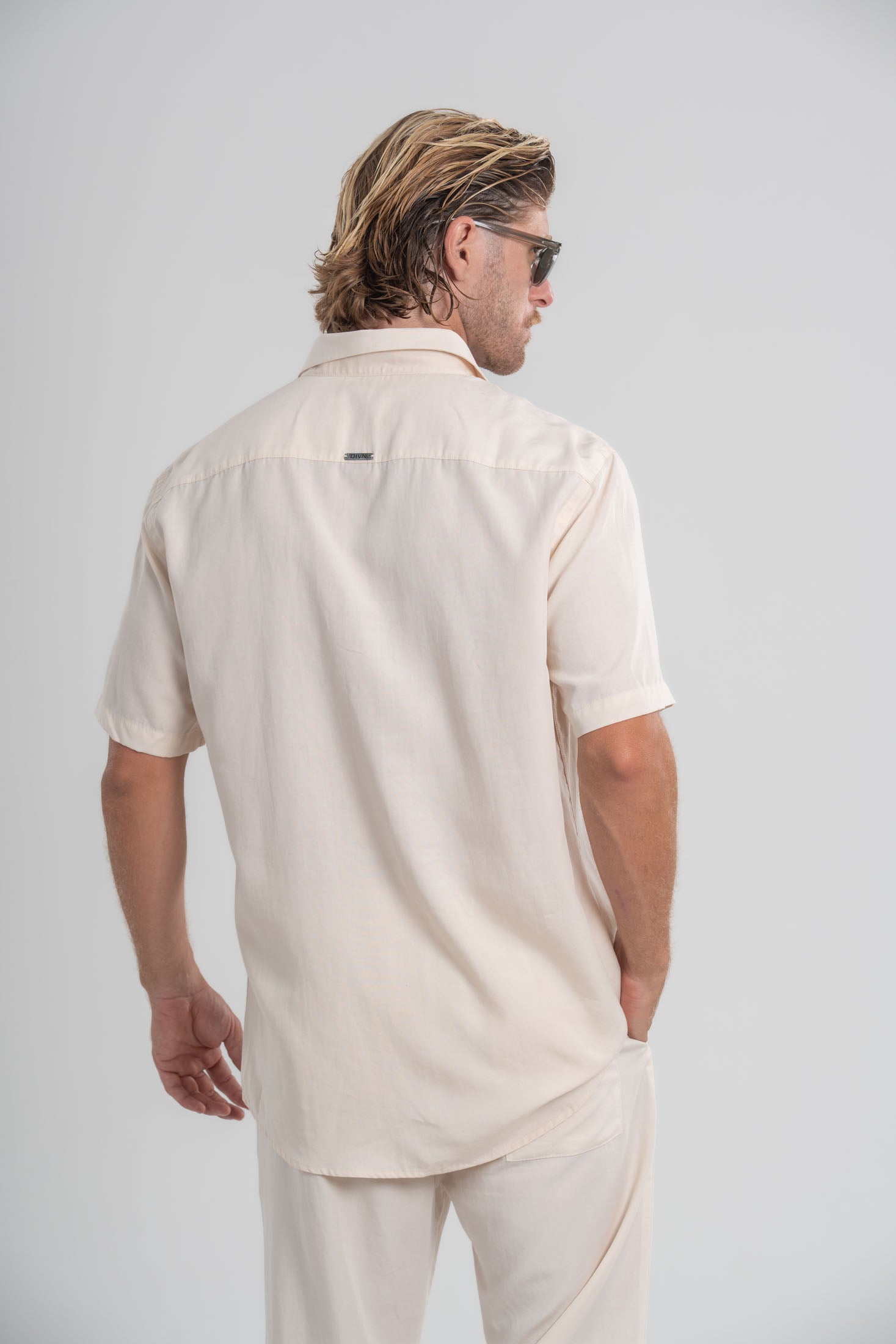 A composição monocromática amplia a sensação de leveza, valoriza as linhas do corpo, alonga a silhueta e reforça a proposta contemporânea da Divn — perfeita para dias quentes, sunsets, viagens, baladas e encontros descontraídos.