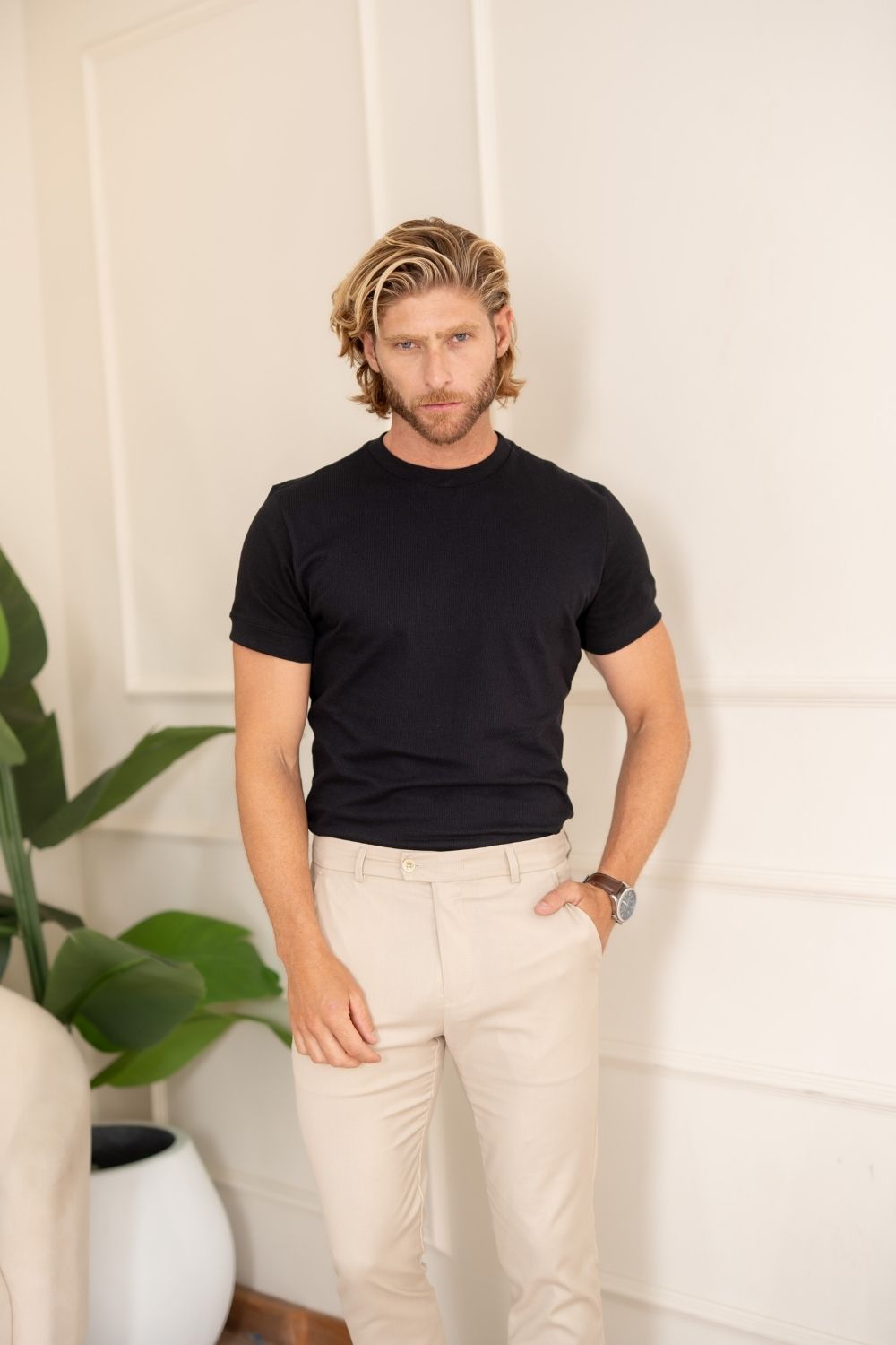 Inspiração Calça Vance Bege Claro + Camiseta Rich Preta + Tênis Life Style